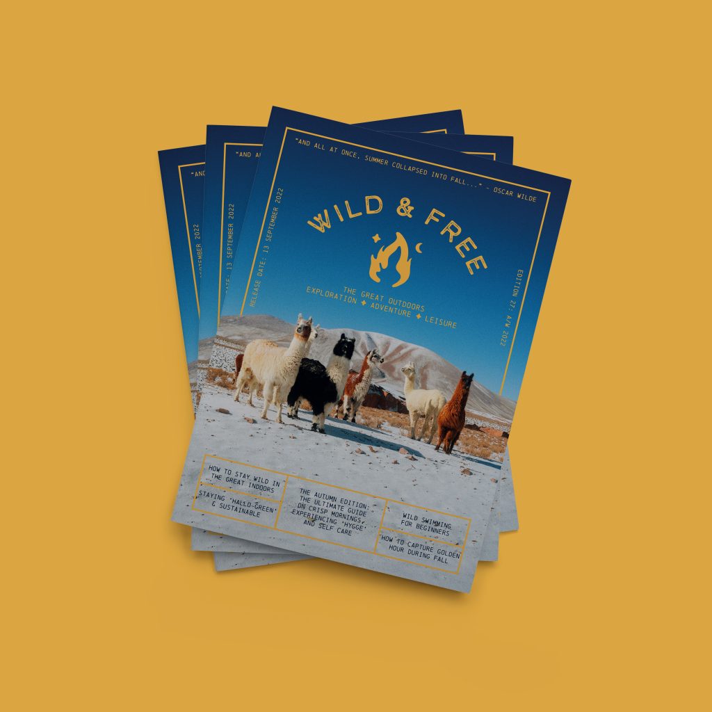 Meet Wild & Free – a travel, nature & lifestyle magazine brand. This brand consists of autumnal, warm tones with a rustic aesthetic and a strong sense of connecting with the great outdoors.